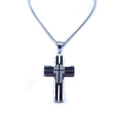 Halsband i stål med fint kors med glittriga stenar som detaljer.