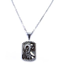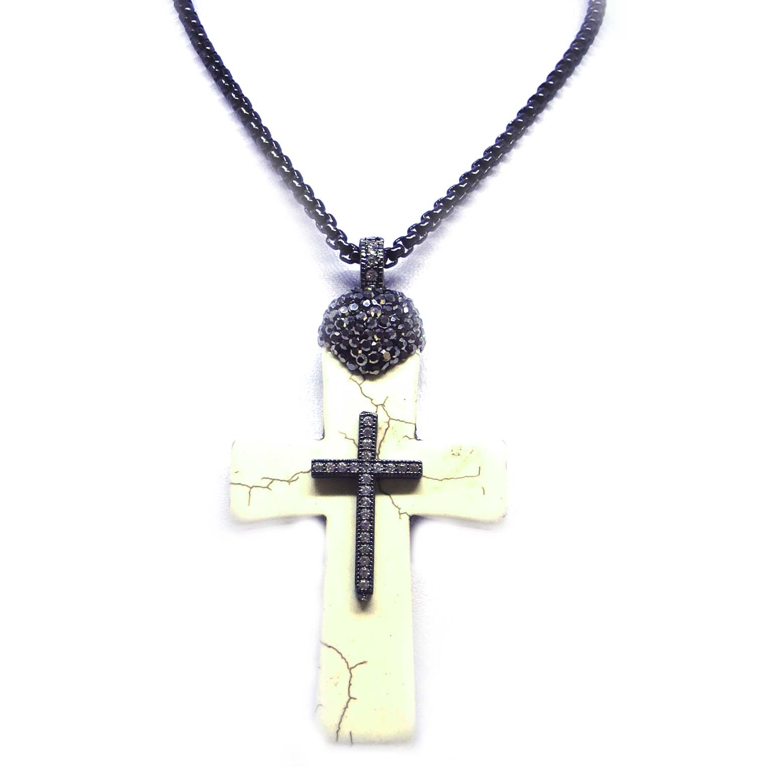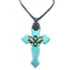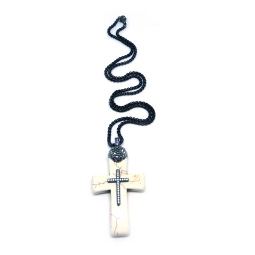 Vackert halsband med kors i vit turkos med strassdetaljer.