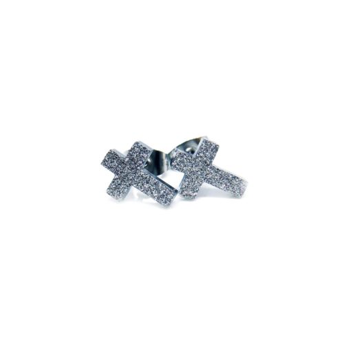 Vackra örhängen utformade som kors med blästring som gör dem glittriga.