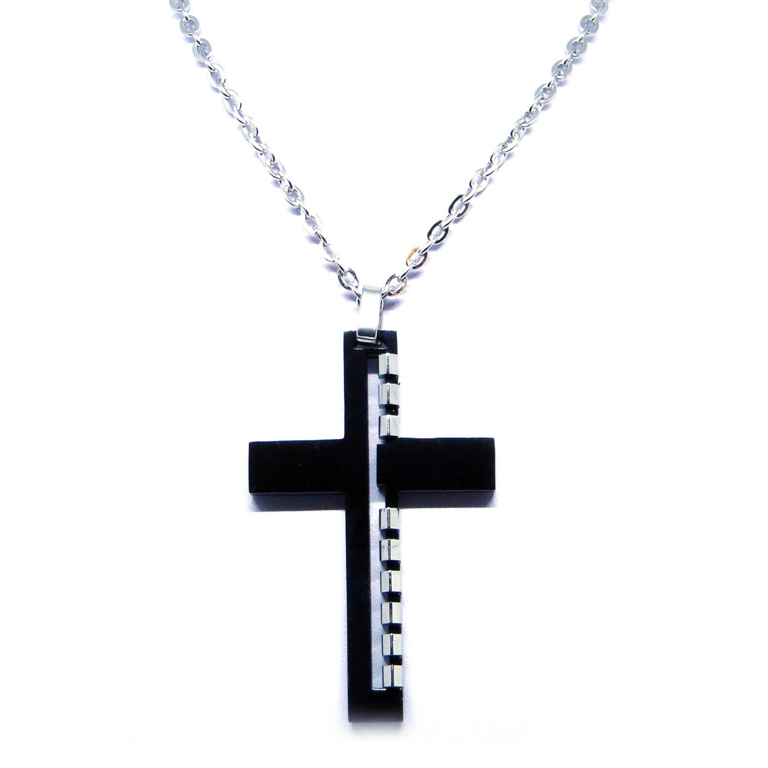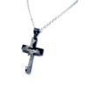 Halsband med kraftigt kors i svartpläterat stål/stål