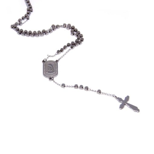 Radbandshalsband i stål med detaljerad amulett & kors.