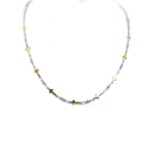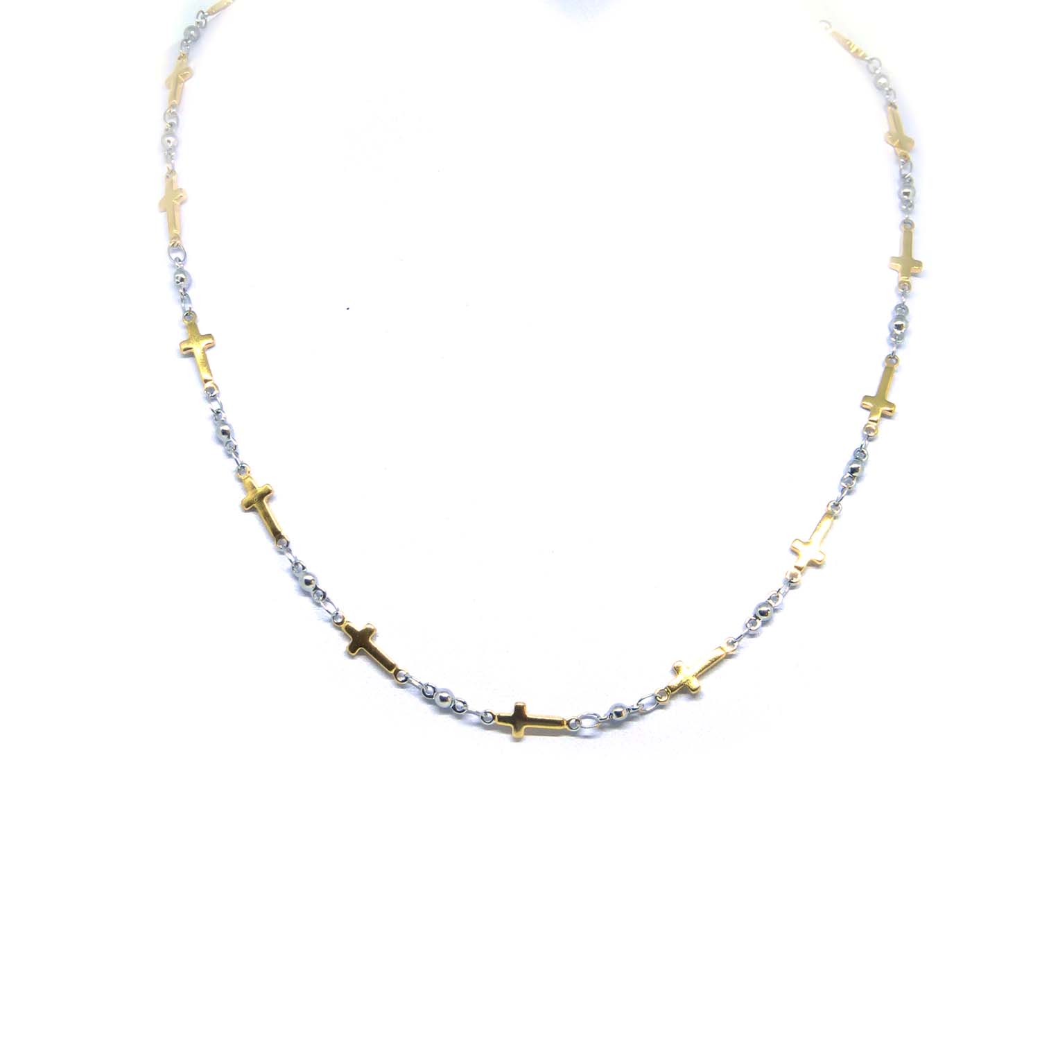 Halslänk med sammankopplade kors i stål och guldpläterat stål.